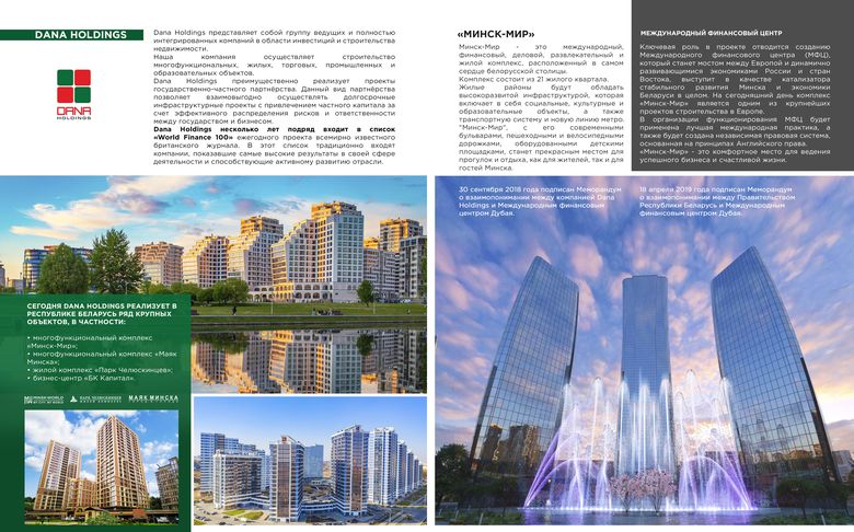Dana Holdings заботится о вас, и для комфорта и удобства выбора нового жилья разработала многофункциональный сайт с широкой базой предложений по жилой недвижимости в Минске. В разделе «Поиск по объектам» Вы найдете более 1000 готовых проектов квартир в престижных районах столицы. Благодаря удобной навигации Вы сможете узнать цены квадратного метра жилья в каждом жилом комплексе и легко подберете квартиру нужной площади и оптимальной стоимости, соответствующую Вашим планам.